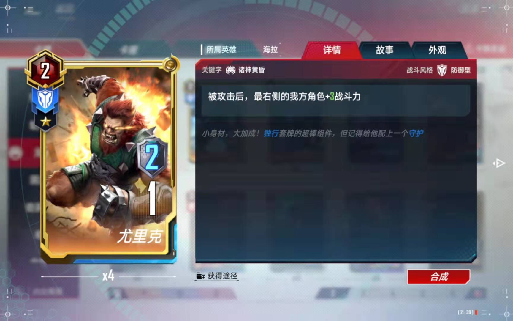 2、特殊情况:终幕成型以后,如果对阵天敌“援军”、“大身材艾丽卡”、“振奋”的时候,如果自己血很少,可以考虑停留在四级商店找决死反击、紧急缩小,苟且一回合,如果援军比较糊,可以提前买一张爆炸,