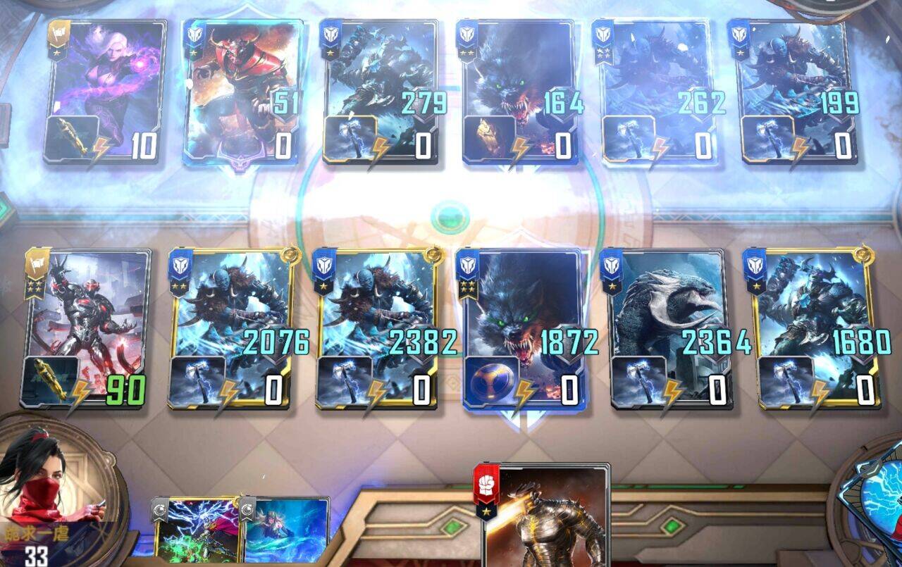 (3)、对大部分阵容的正常摆位:两侧是护甲最高的诸神黄昏防御随从(两侧可以让穿甲钢铁侠伤到的概率降低三分之一),其他卡牌放中间,