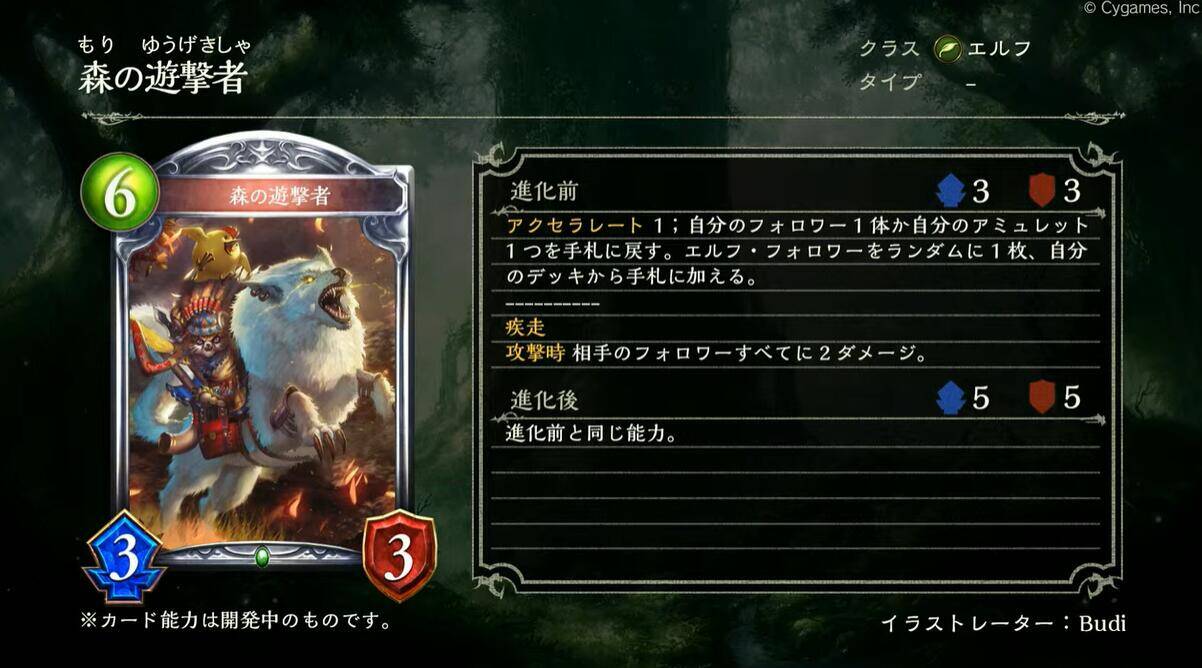 激奏 1;将1个自己的随从或护符返回到手牌中。随机从自己的牌堆中抽取1张精灵随从到手牌中。
