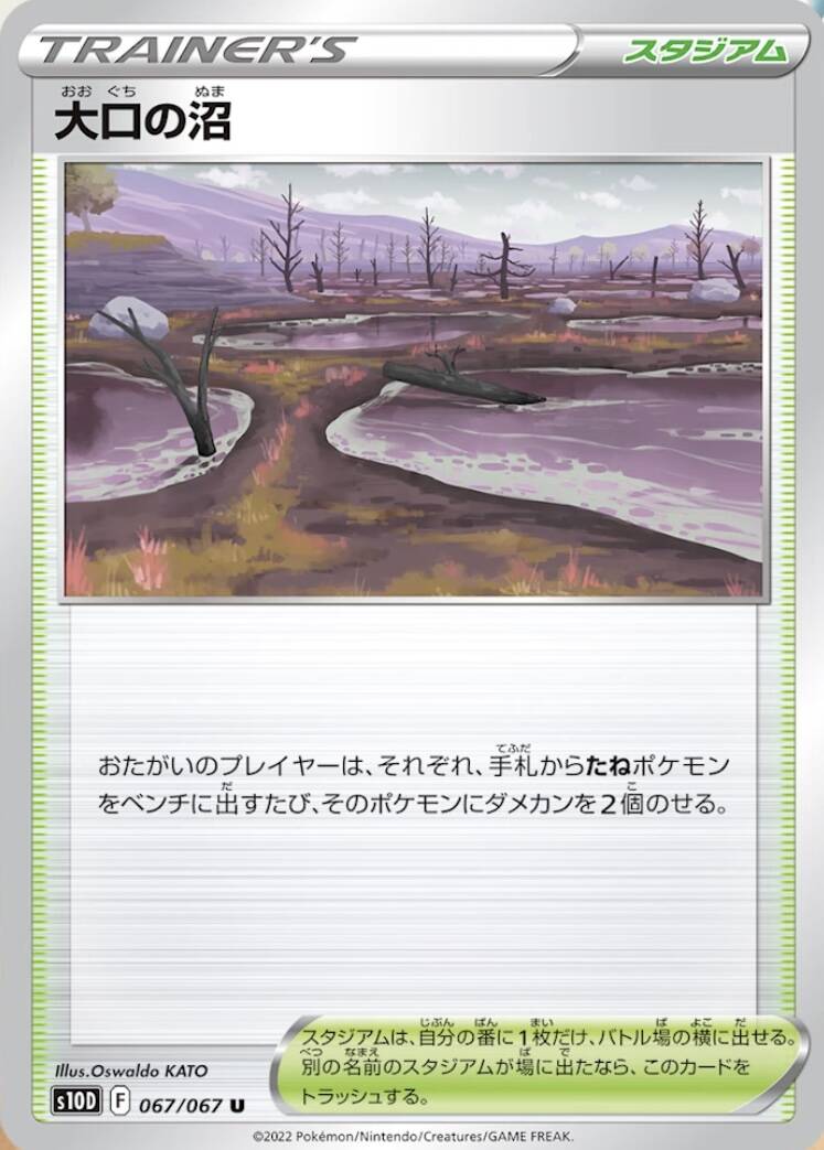 双方玩家每次将1只基础宝可梦放置在备战区时,在该宝可梦身上放置2个伤害指示物。