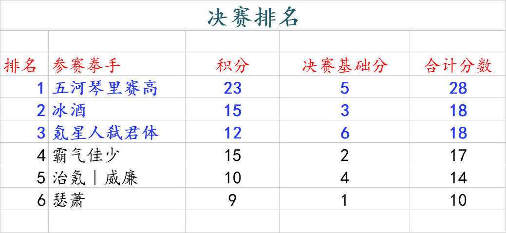下文我会给大家贴上本次比赛前三名的卡组,以下是半决赛的最终排名情况: