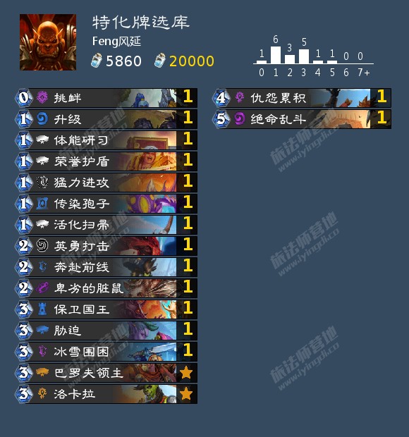 勇猛战将洛卡拉:雪落茫茫,这时候一刀返就像是在新年的第一天穿上了新内裤一样舒爽。10点护甲和技能的荣誉击杀也能为快攻内战时切换形态。刀最不济也能当奥金斧。可惜的是开船后刀只能打一下,要是刀的耐久降一点然后降一费就好了。此外还能一刀返巨人、心火牧10+怪和以墙斩杀。注意,把怪砍死了也能一刀返,别错斩。实战效果优于预期,卡位不变。