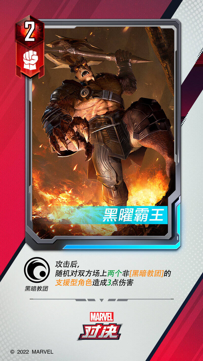 支援型角色们接招!【黑曜霸王】拥有的极其凶猛的作战风格,使其在攻击后,可以继续对双方的非【黑暗教团】支援型角色输出伤害,击溃敌方后援力量。