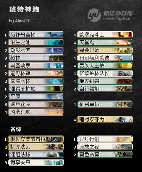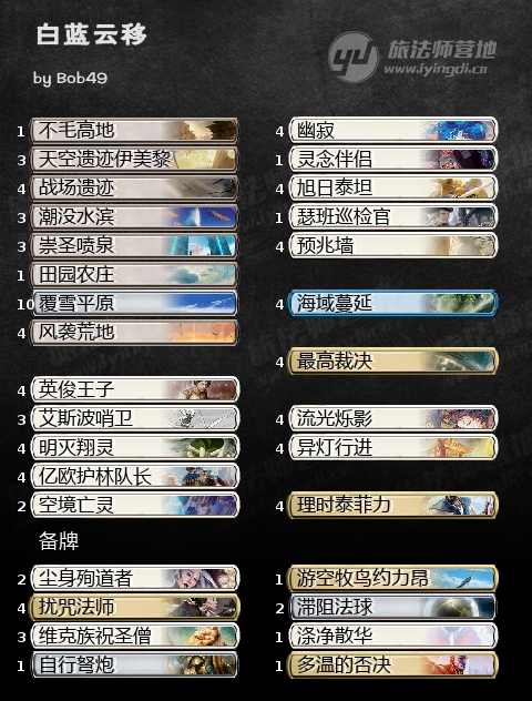 这套牌主色是白色,蓝色只是为了高裁、海域蔓延和小泰很轻的混入 ,套牌的主体思路当然也就是通过进场异能获得额外收益,从而形成优势。在长盘对局中,这套牌还加入了4张旭日泰坦和3张天空遗迹伊美黎,能够让死去的单卡英雄不朽回来再赚,这雪球要是滚了起来,确实能给对手巨大的场面压力。