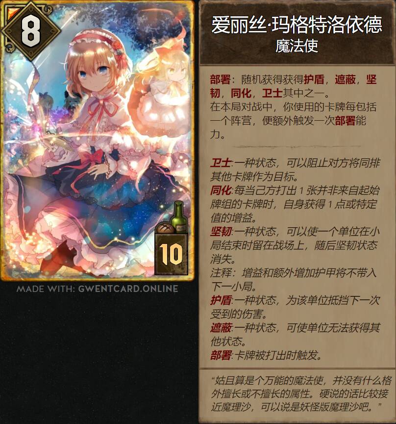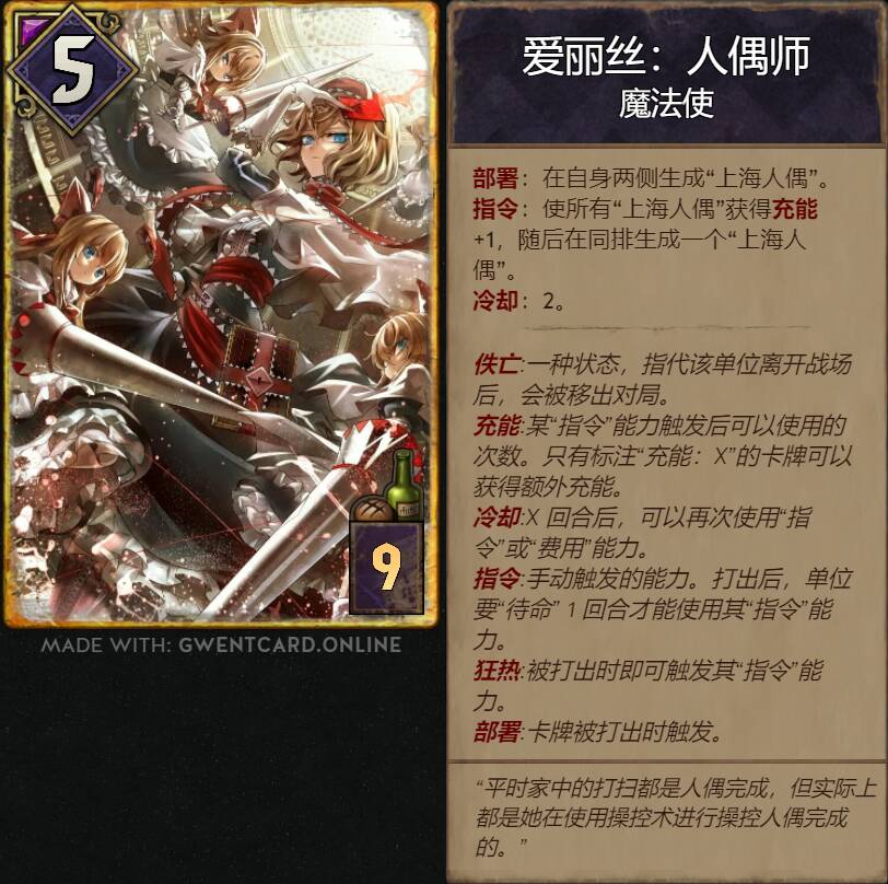 1.本帖是东方project和巫师之昆特牌的diy。