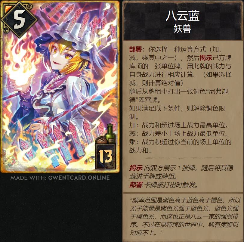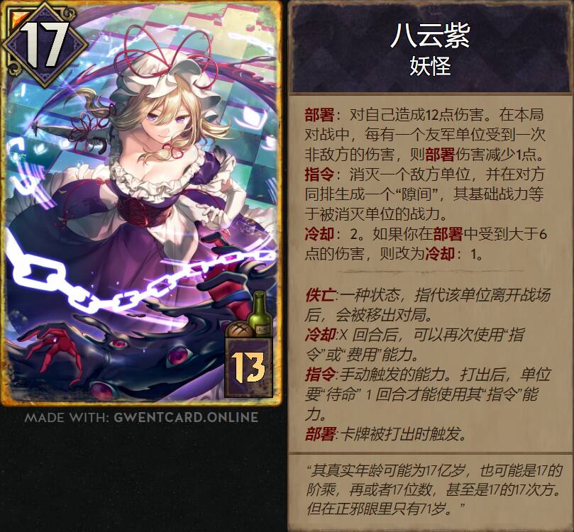 (不了解的只需关注卡牌设计即可,如果你有兴趣,欢迎了解东方project!)