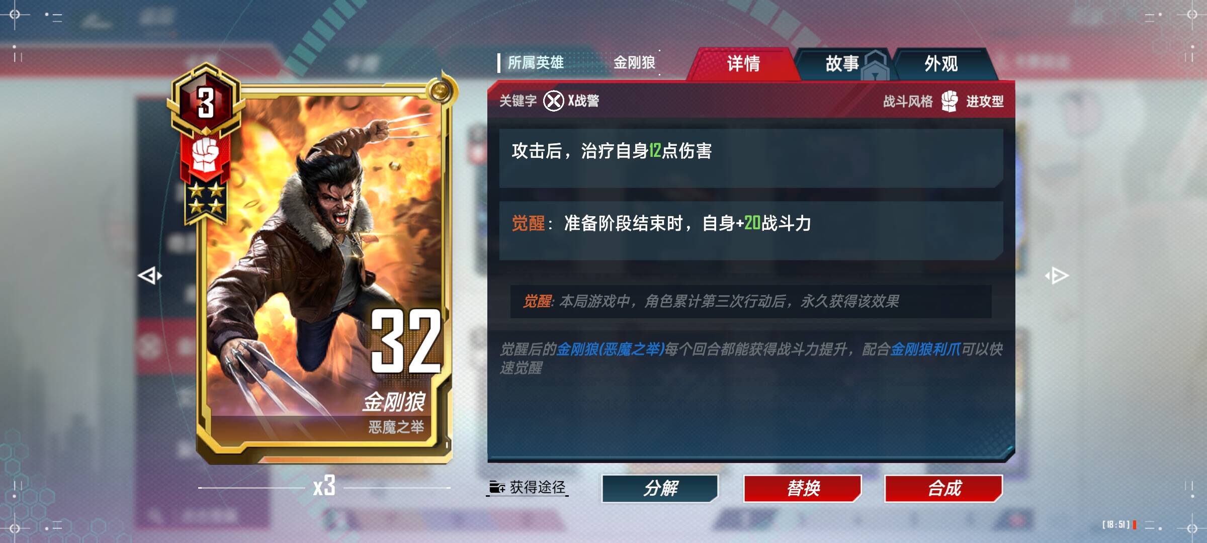 金刚狼&狼爪子:虽然被削弱了,但是依然是3本最强单卡,能满4就拉满,我只有三张,带2也是足够用的。