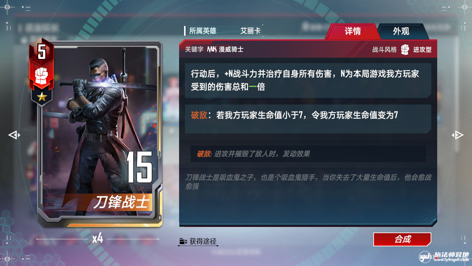 这张牌带两张就足够了,如果夜魔侠前期不来就拿,前期被血入的厉害时也可以依靠其破敌来回到7血,打出7的意志来让我们获得大量战力