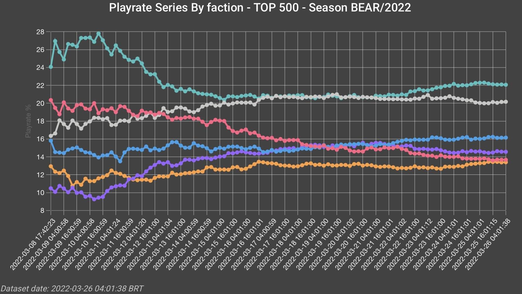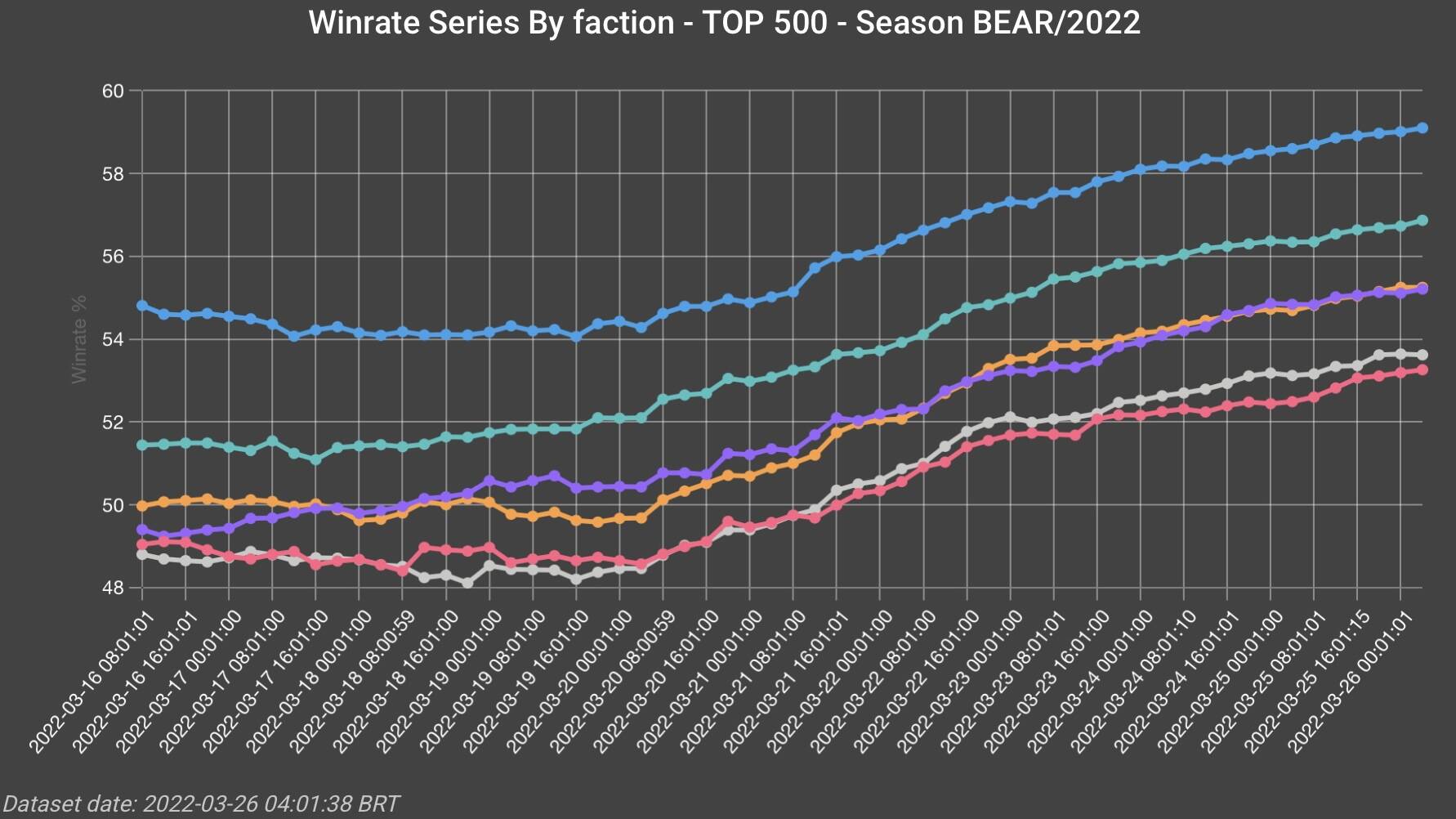 职天前五百胜率变化,各阵营强度差距明显。