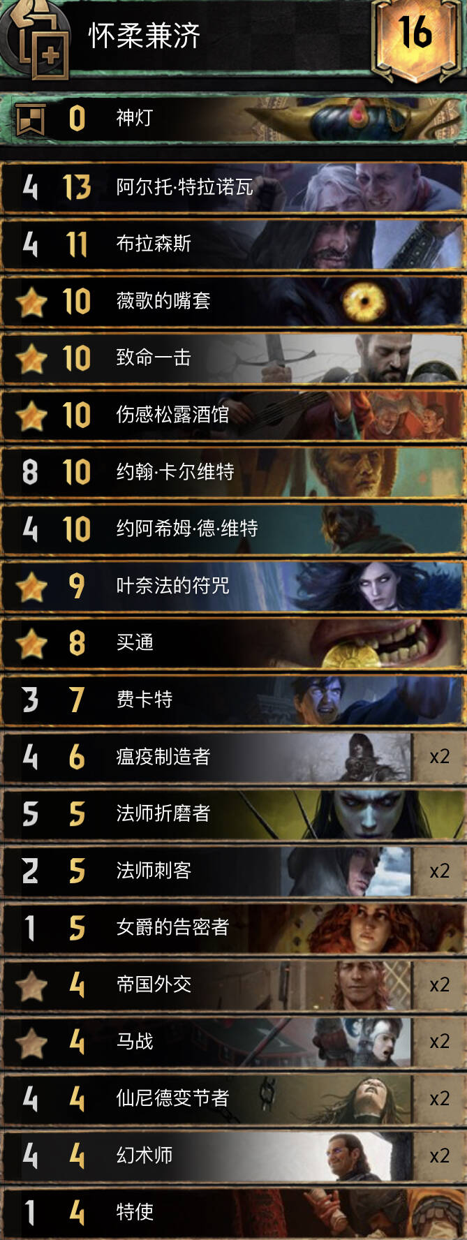 还是老一套卡组,不过打法变更了,r1能上手就打操作者拉蝠翼魔。然后第一次技能,千里镜/蝠翼魔加第二次技能,巨魔,长者。r2泽维尔/梦魔,技能,夜宴,欧丽安娜基本可以莽穿。