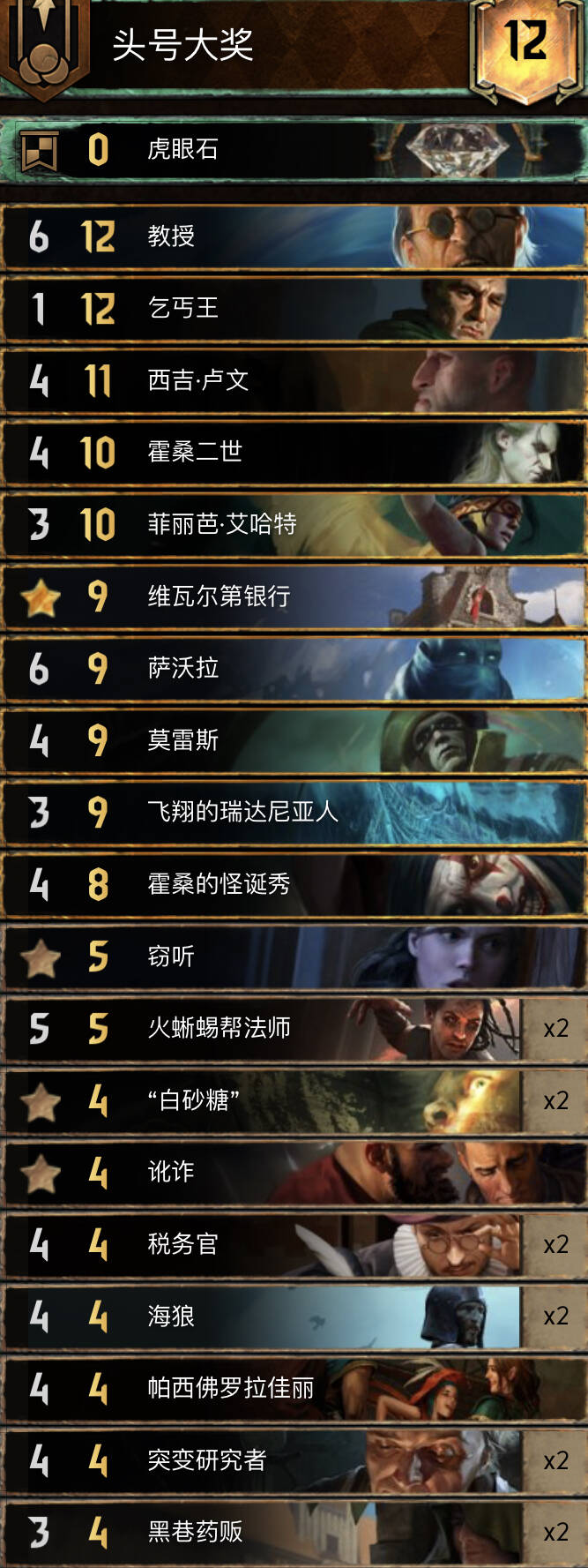 由于先前的削弱,大奖几乎从环境中消失了,但它仍然是一个不错的卡组,也被用在比赛。大奖的主要好处是,你不必关心你的金币上限,对刚入门的玩家来说可能会好操控一些。