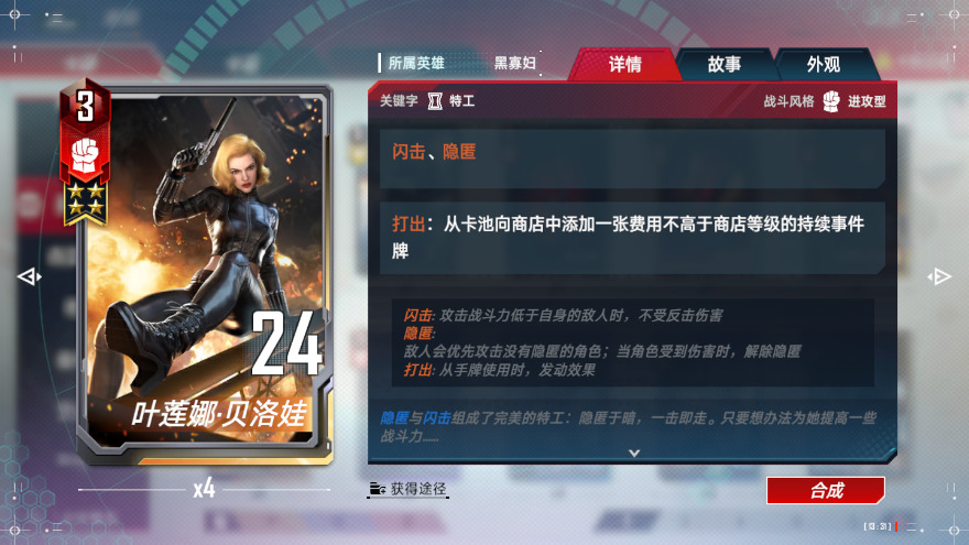 配件卡:影版红寡妇x2/4(搭配叶琳娜浪人,带着姐妹吸两次)