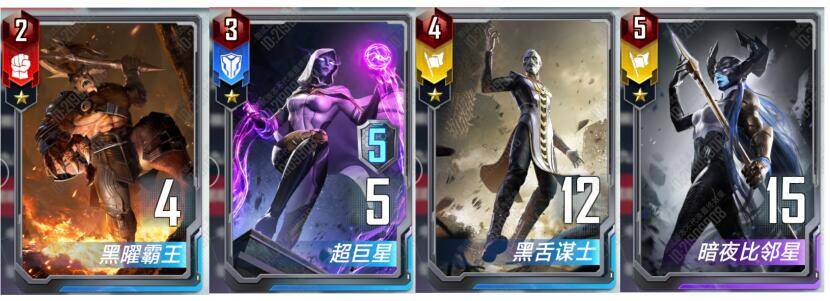 (4)、在场上和手牌上加起来的教团角色为5种的时候,每张精神寄生都可以获得一张灭霸,国服是达不到国际服那种满场灭霸的效果了,最好的最终阵容是教团都升星回手了,场上只留下本回合套出来的、带了手套的灭霸,只要运气好,两个手套都能打出,这样可以消灭绝大部分阵容。