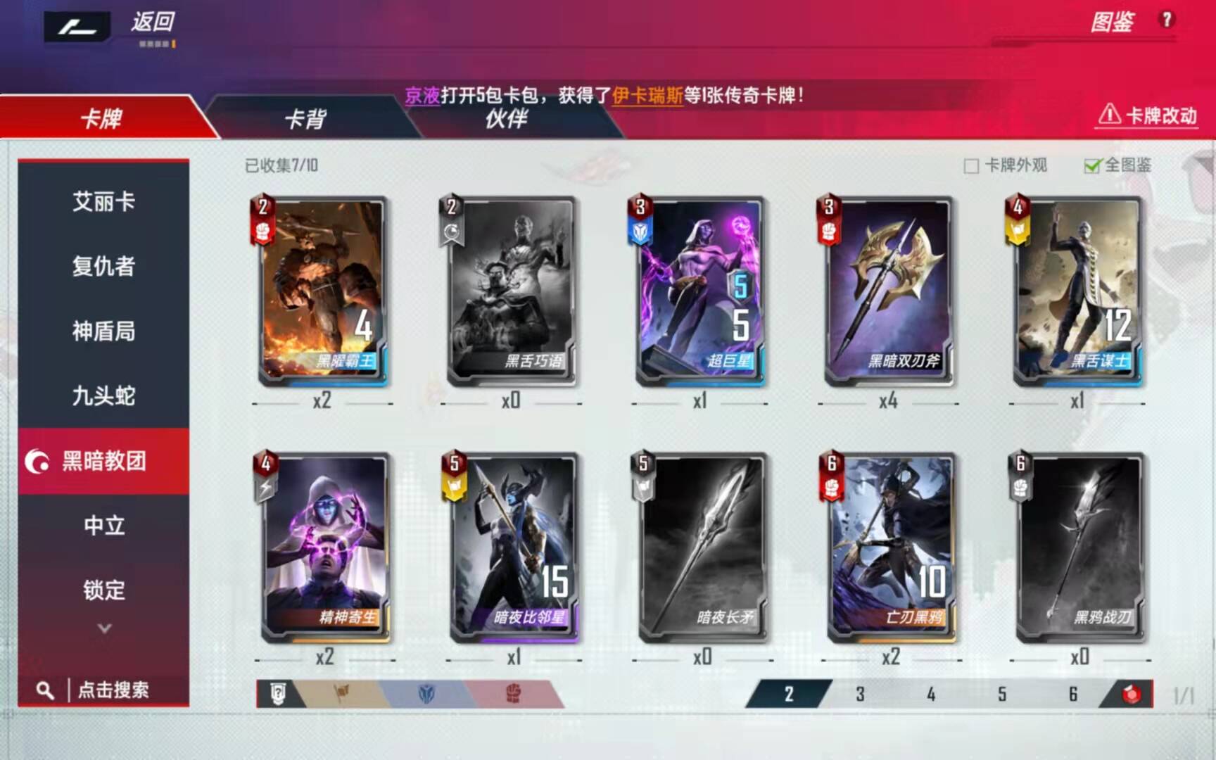 5、升六本的途中如果遇到了黑暗教团的卡,就买下来放手上或者直接放场上充当战力。到时候套娃的时候有更高战力的随从替代的话,升级到二星回手就行了。