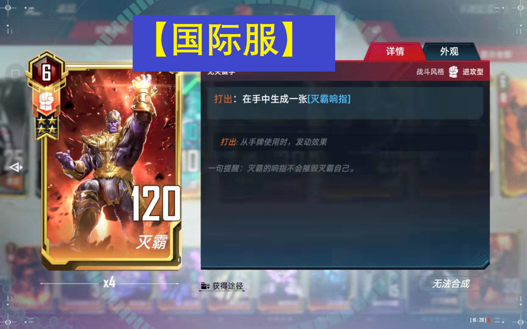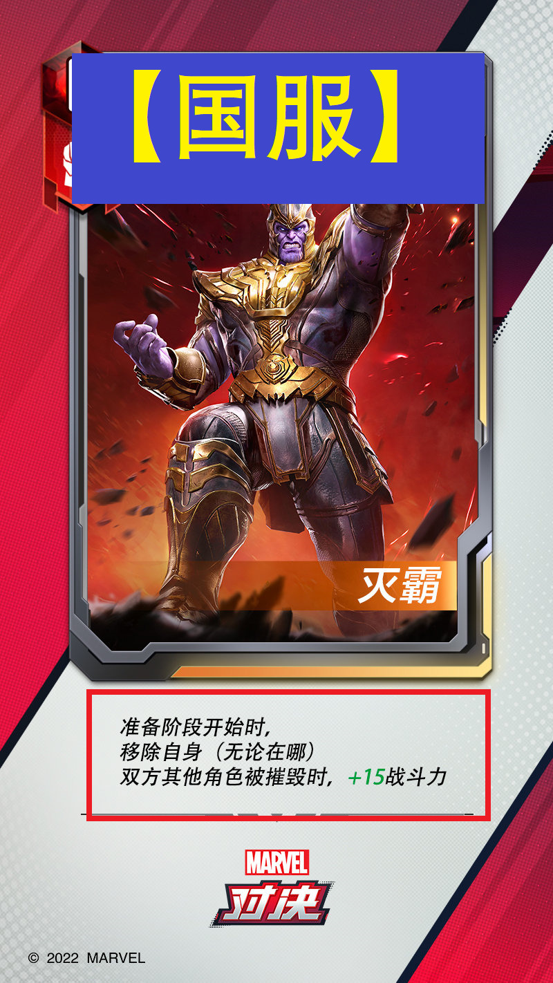 因为灭霸国服没有过审核的原因,但是开发组又想让国服和国际服完全同步,所以才想出了这么个办法,把灭霸作为送的奖励卡来出现,打个擦边球,至于没过审的原因嘛,据说是这个反派人气过于旺盛,不符合社会主义主流价值观。that's all.总之,这次灭霸改版,实际上是网易强行同步国服和国际服的一个畸形的结果。