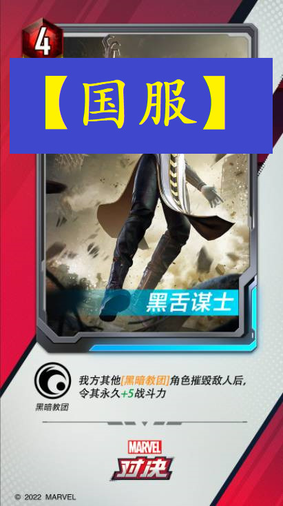 先给大家讲一讲教团在这游戏的历史,自从去年2021年3月份,黑暗教团上了国际服之后,那个时候,正是卤蛋复仇者最火爆的时候,所以黑鸦设计的自带技能就是直接杀死被攻击的复仇者,卡牌设计的初衷是: