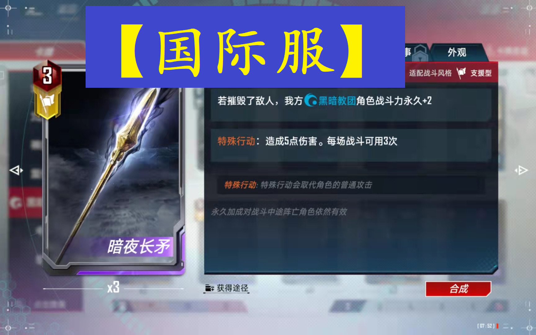 (4)、有没有亮点?有,这次教团可以说是强行上线,目前天梯上最火的卡组之一就是艾丽卡、三郎等前期统治力十足的卡组,然后教团的武器改成了克制前期卡组的武器,国服的图,我会在更新后补上,大家只需要知道,这个武器,是本次【纯教团流】能在国服稍微有点挽回强度的因素之一: