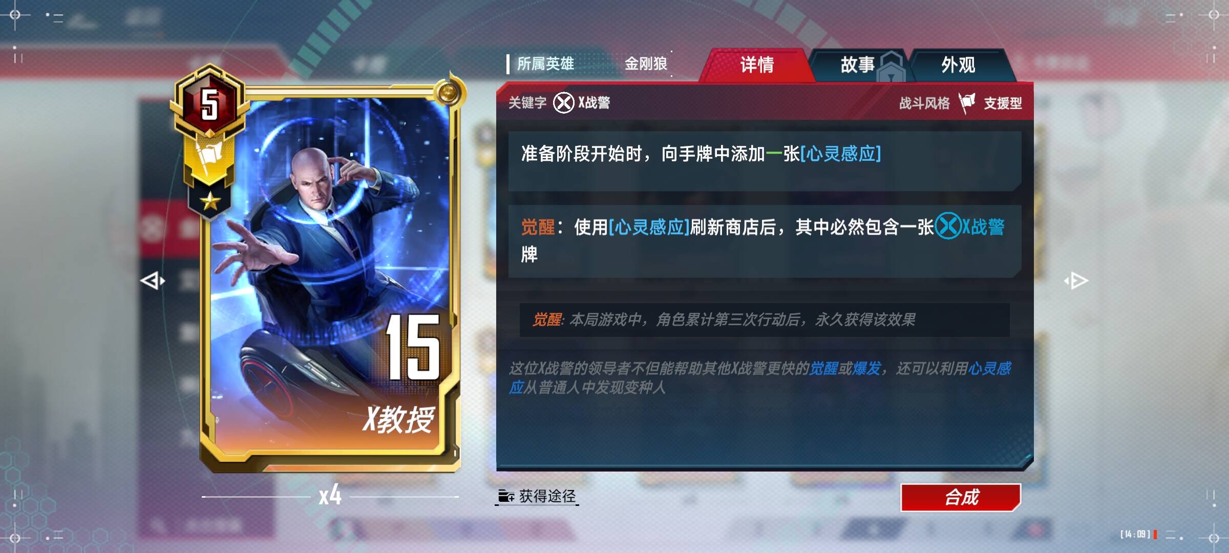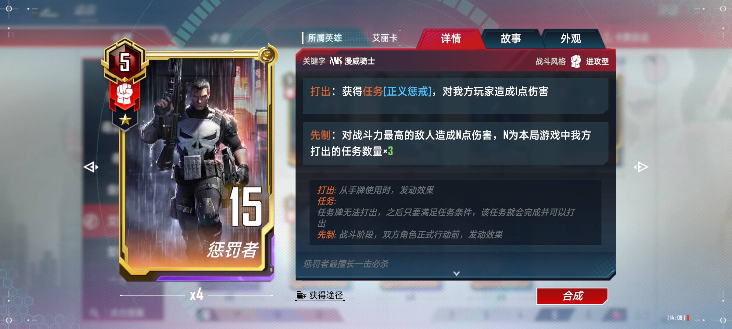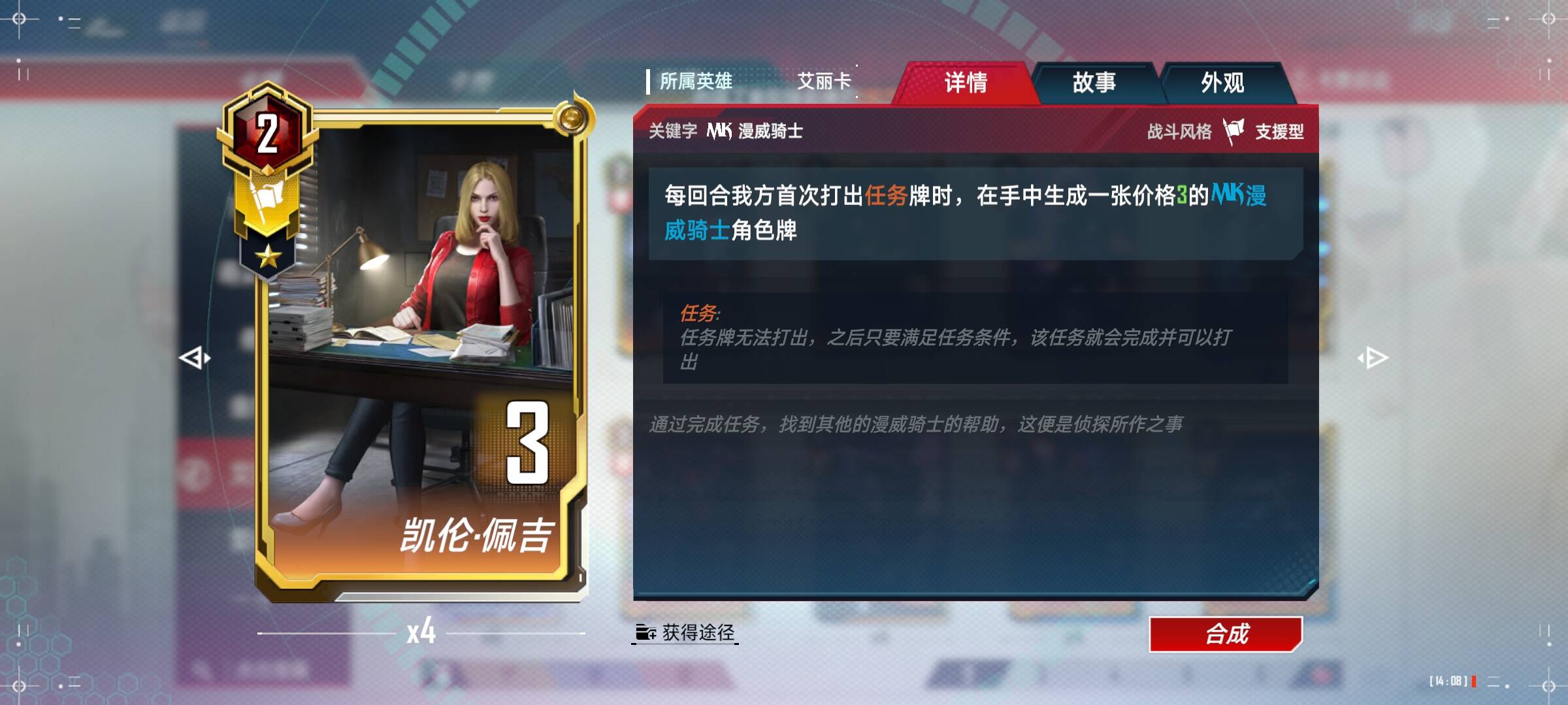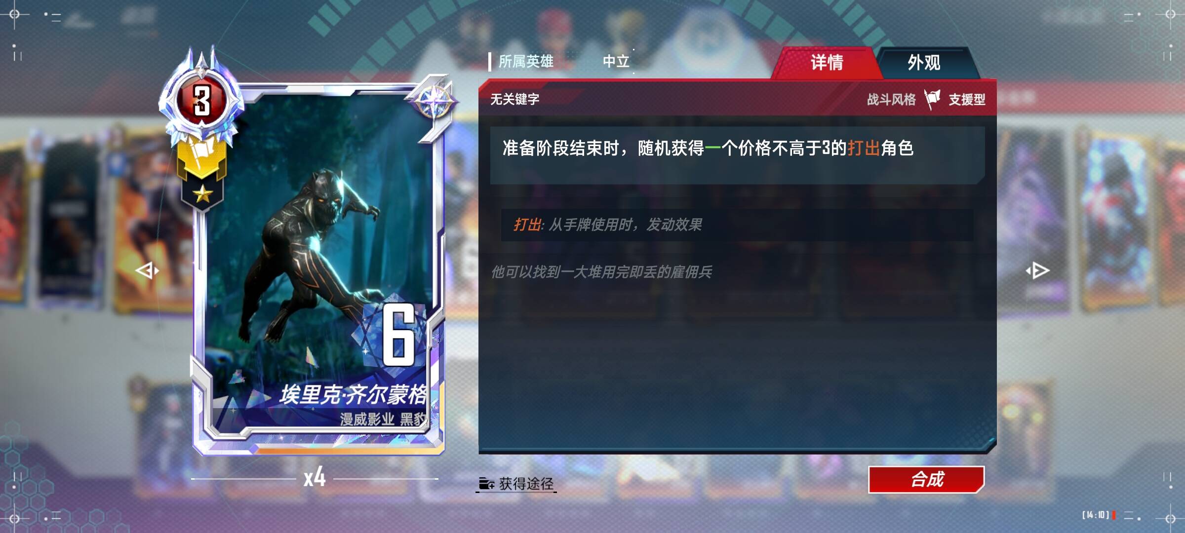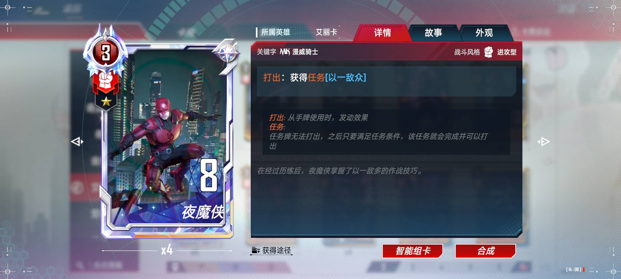 夜魔侠(4):前期可以配合小辣椒,重要的是夜魔侠得完成任务,需要一张一张放下去触发任务,不要拿在手中直接合成。