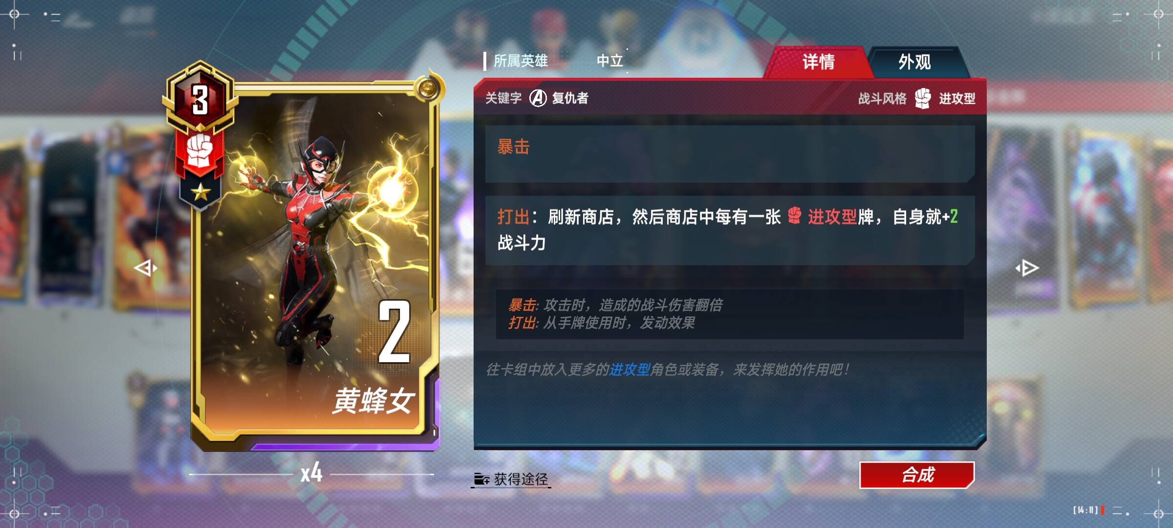 黄蜂女(4):前期配合小辣椒,优质的战力以及刷新商店,没有三狼或者夜魔侠时可以合4星,其他情况没有她的格子。