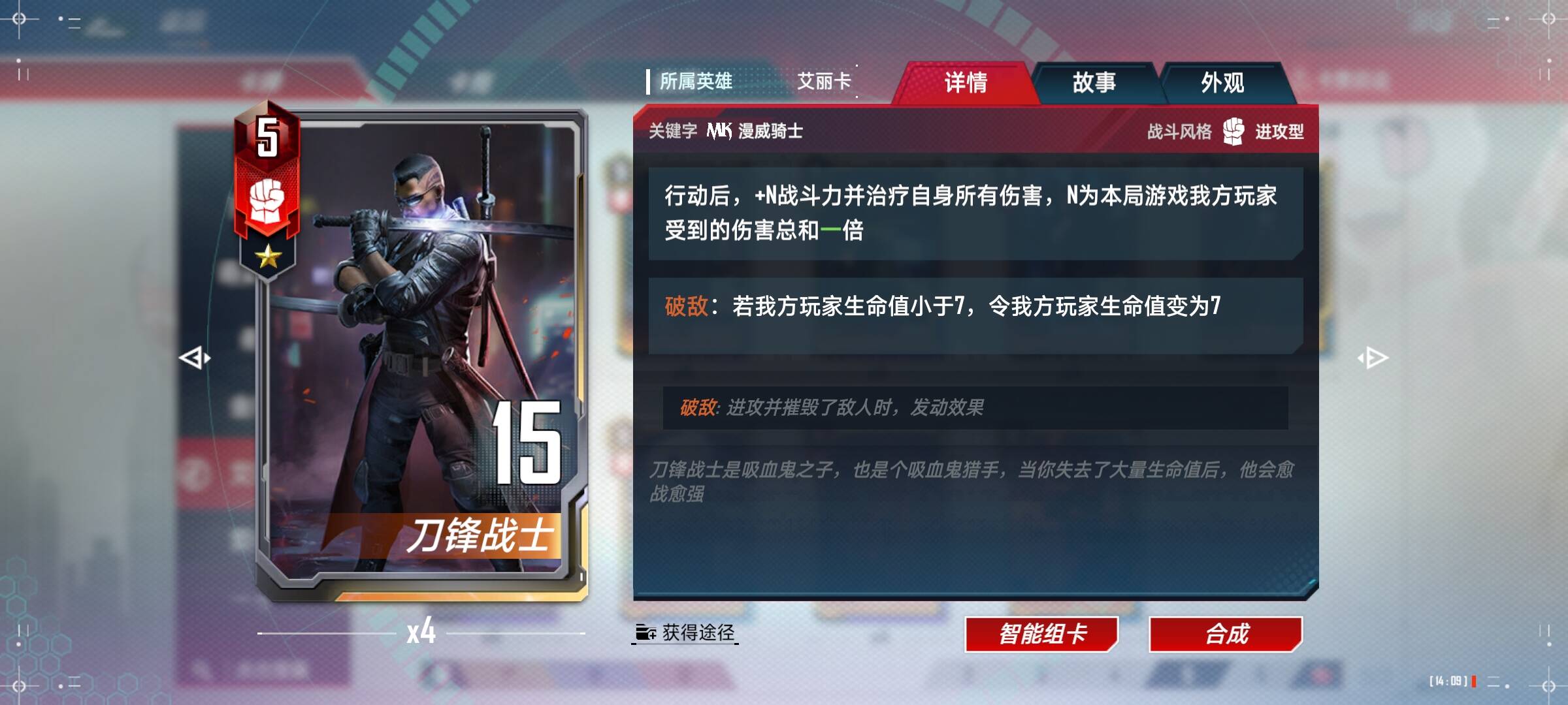 刀锋战士(2-4):两星和四星的刀锋可以出爆发出强大的战力,因为我们卡组已经很厚实了,所以可以带4,当然2星的刀锋乃至一星的都非常厉害的存在。