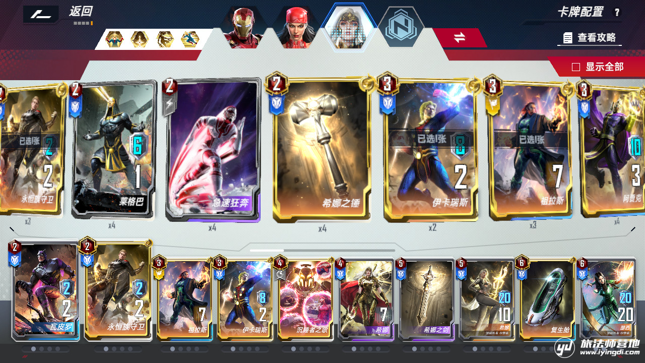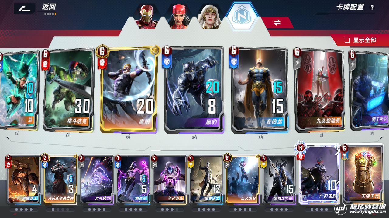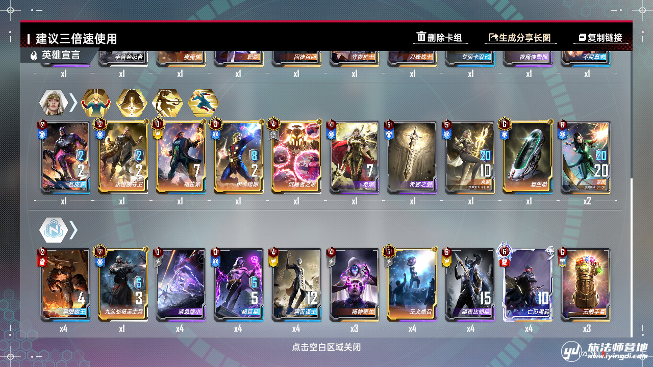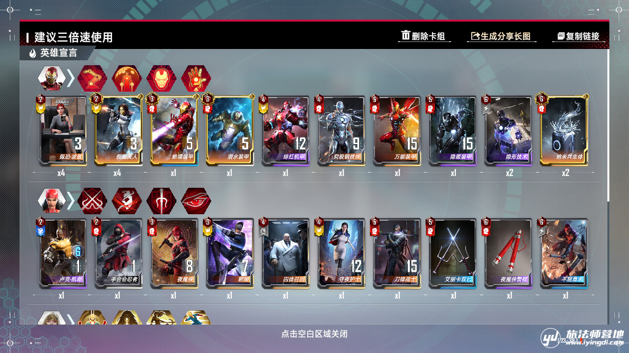 这部分我是满编所有黑暗教团组件的,混套娃在国服目前环境很难实现只有保证自己前期能少掉血为目的去带卡;满编缩小苟血同时带满正义感召因为很多时候都是缺一个费用的黑暗教团卡,这里不推荐带教团自身的2费事件非常卡位置并且毫无软用;黑曜霸王和超巨星两人可以很好的保护我们前几回合的血量,各自的效果都有一点负面自己也是需要注意站位的要注意哦;升到5本之后,血量健康同时自己场面不是很大我们就走plana也就是套娃流使用寄生把5费卡变成鸭子来获得灭霸,中期灭霸响指还是很有压制力,鸭子套起来之后手牌压力比较大推荐开3倍速并且不要**效我是为了帅;最好能把场上的黑暗教团卡回手场上实现多个鸭子带6费专属武器这样响指打的不如也会有后路,注意不要断了寄生和鸭子哦;控制手牌应该是b计划的难点之一了我只能说多玩。。。