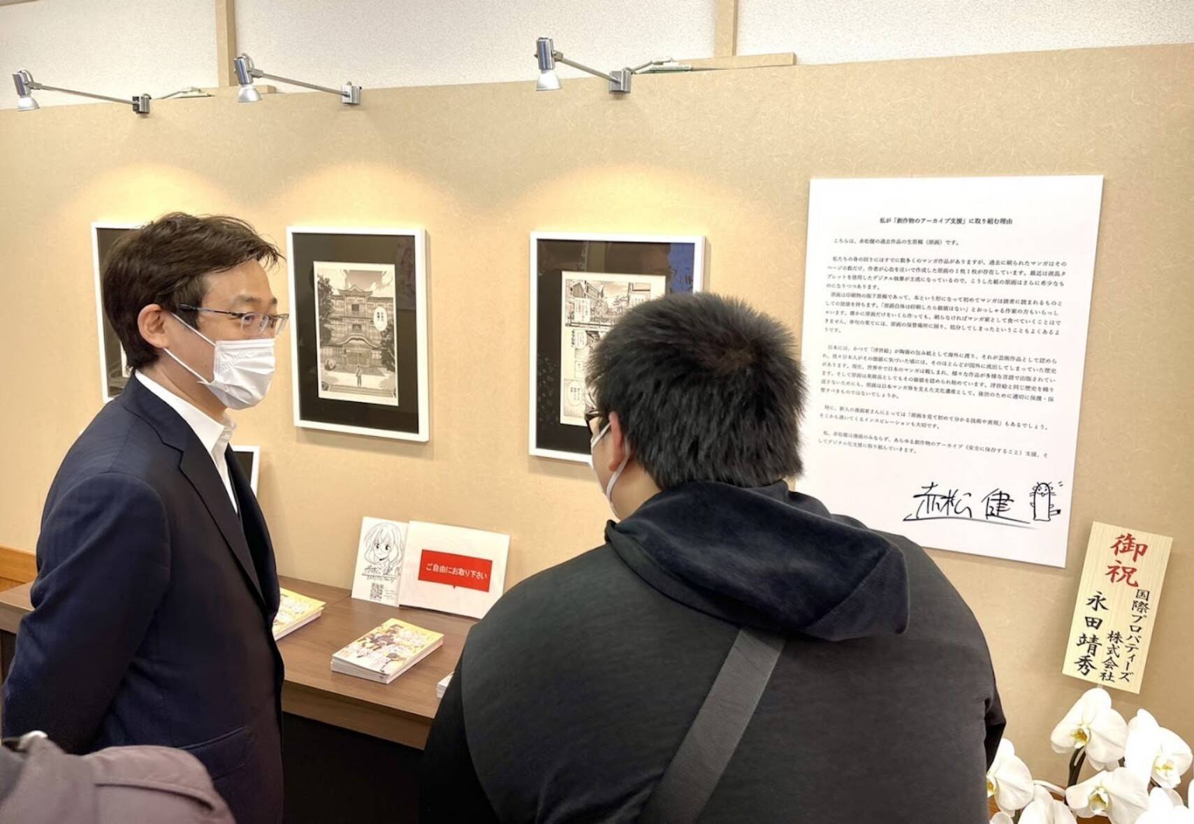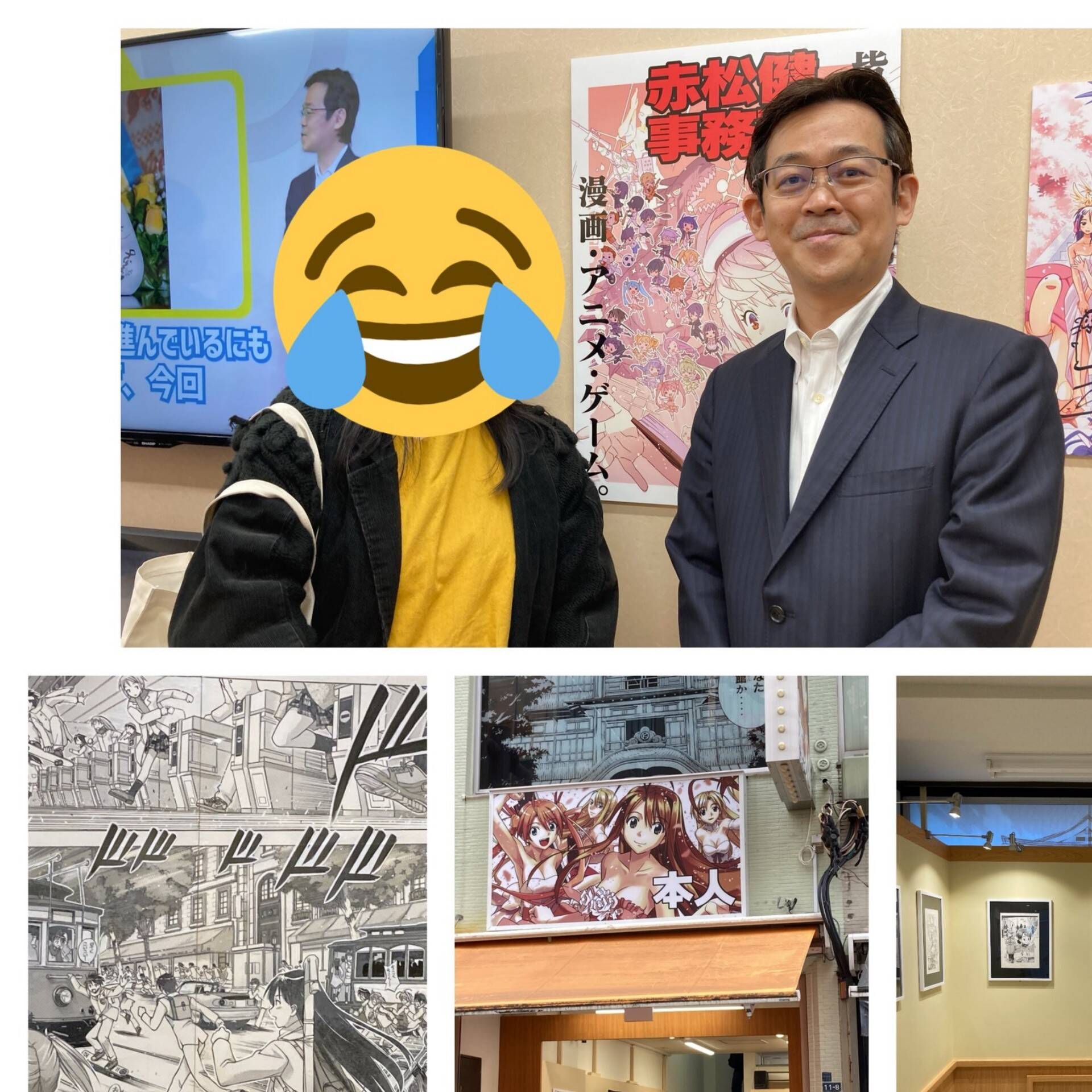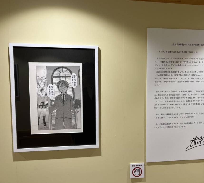 事务所内贴满了许多赤松健的作品原稿,许多人为了漫画原稿而来拜访。而这些手稿也成为他的最佳助选员!