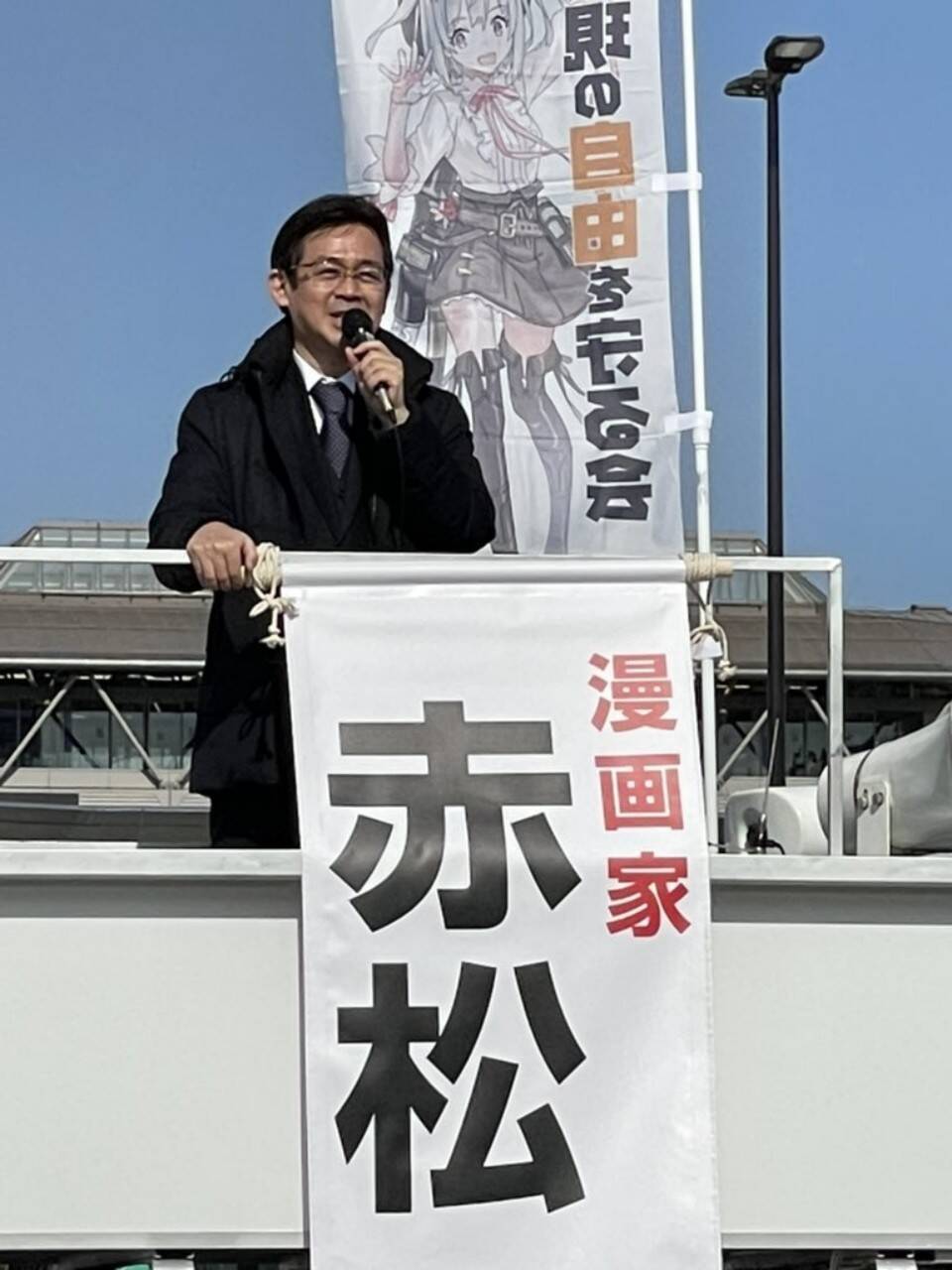 今年赤松健将角逐日本参议院议员选举,并决定在秋叶原开设个人事务所助选。