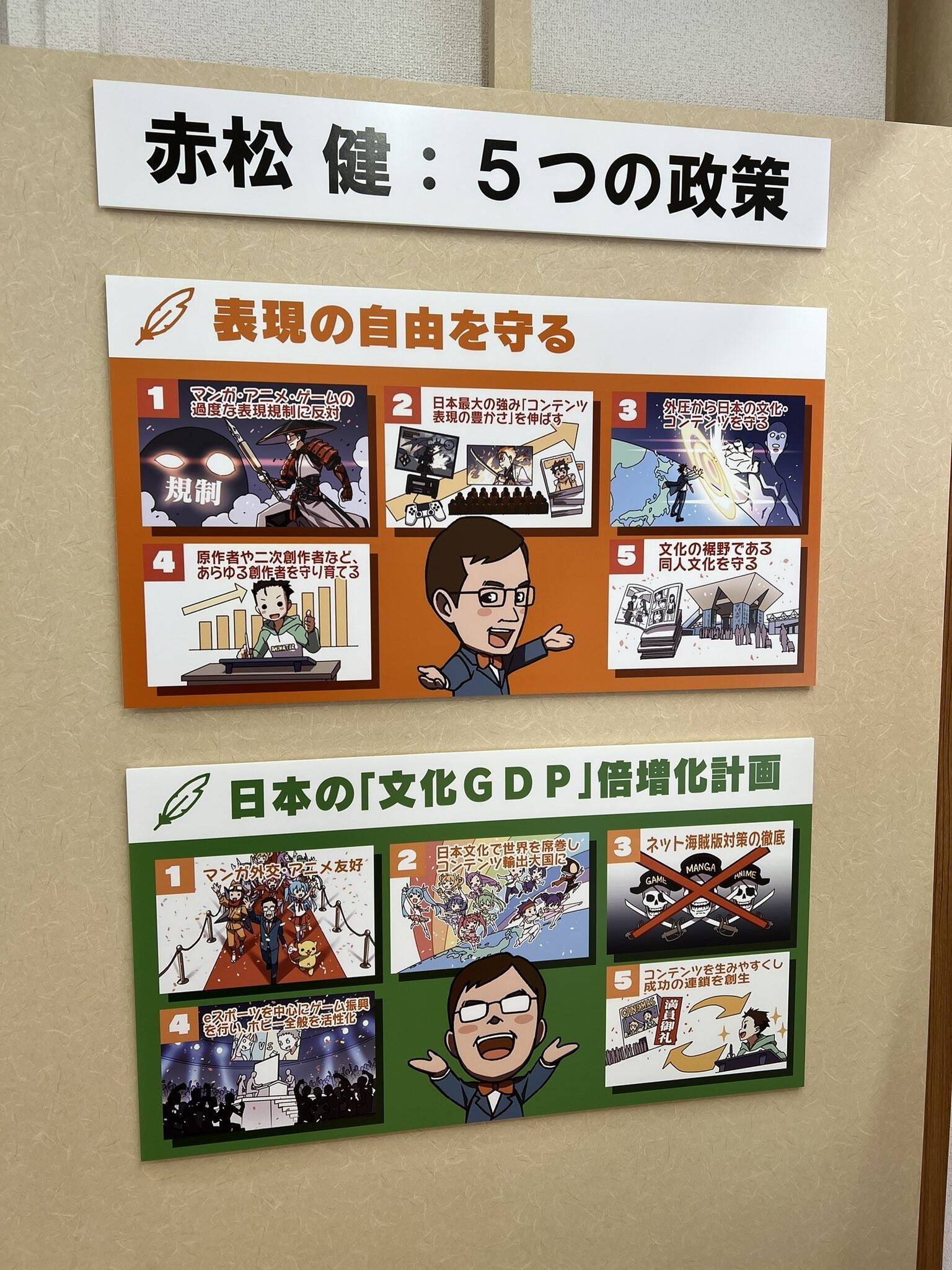 这次投入政治,也是为了让自己热爱的漫画界能发展得更好,反抗现下对动漫领域表现手法的限缩,同时也关心动漫的盗版问题。