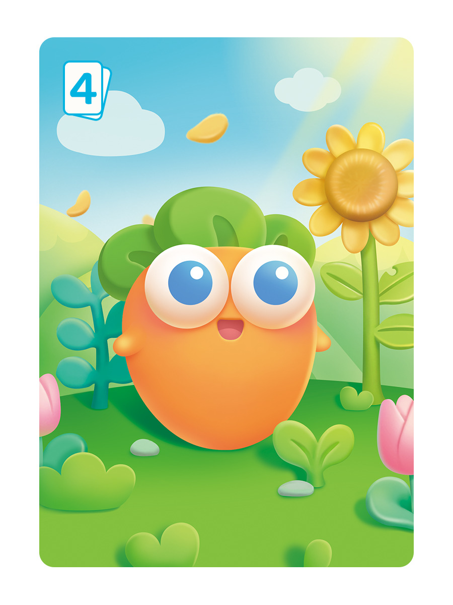 玩家至关重要的萝卜,则由3张萝卜卡牌组成。这3张牌从上到下排列,越往下被啃得越惨。不过,与之相对,战况越危险,玩家的手牌上限也会越高,给相对危急的玩家多些选择。