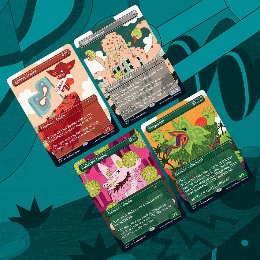 是他们!我们碰到了一些普通人。罗曼·克洛诺克创作了他们。在一个古怪奇想的世界里,一些普通人正在努力生活。如果你把他们加入套牌或收藏,他们也会在你那里努力生活。似乎他们总在说:每一个好友圈子里都有虚空筛除体、殖民鬼怪、集宝奥夫和复仇藤蔓。你是哪一个?在Twitter上使用#MTGSLD来告诉我们!