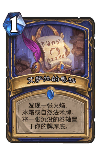 竞技场里发现牌就是王道!还是一张发现法术牌,仅本体强度就毋庸置疑。同时可以极大程度提高探底牌的价值,如果能拿到衍生牌,衍生牌价值起码在五费(对比法师的宝典5费给三张法师法术,而且大多数版本法师法术是铺场的高费质量牌,萨满更多的是小而灵活的控场牌,实用性上法师略不如萨满)是劣势翻盘的希望,在已经拿到艾萨拉卷轴的情况下,探底牌的评分会提高一分左右。