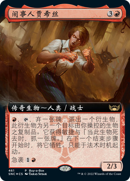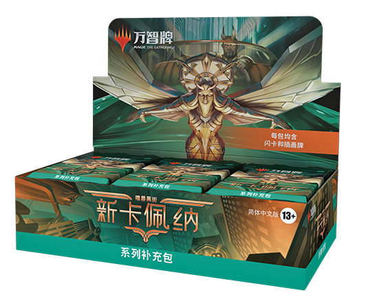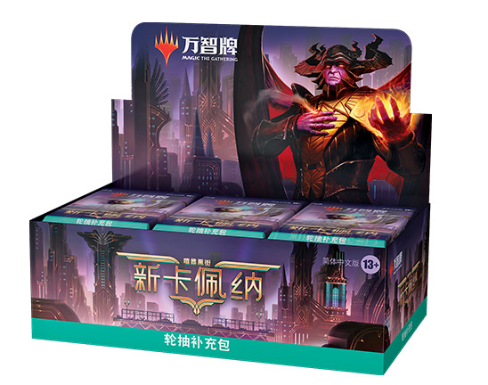 - 1张补充包添趣稀有或秘稀牌,你也可在 新卡佩纳:喧嚣黑街聚珍补充包里开到(它不会是镶金牌;在20%的尝鲜包里,它是传统闪。)