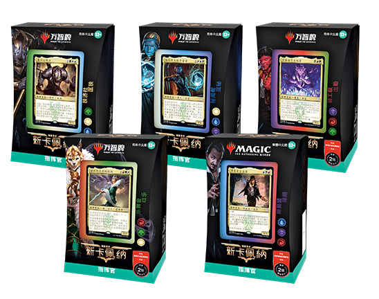 新卡佩纳:喧嚣黑街的每个帮派各有自己的指挥官套牌。无论你准备加入秘闻帮、绝艺盟、勤工联、乐舞会或是扶济社,总有一副指挥官套牌适合你。每副套牌内含两张封面传奇,另有十五张新加入万智牌的牌张,和一张蚀刻闪展示用指挥官。