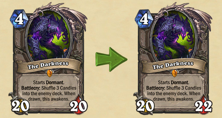 - 开发者注:黑暗之主被当前炉石年里的其他卡组形态甩开了,我们觉得只有让它跟上时代才行。