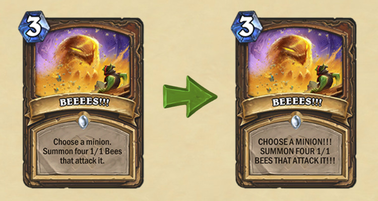 - 旧:选择一个随从。召唤四只1/1的蜜蜂攻击该随从。 → 新:选择一个随从!!!召唤四只1/1的蜜蜂攻击该随从!!!
