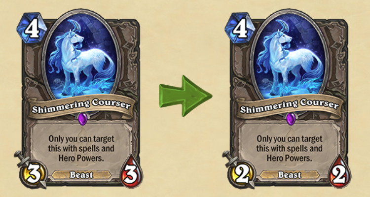 - 开发者注:独角兽牧比预期的更强。尽管还没有人发现这个卡组,这个改动看似出乎意料,但我们觉得这个改动还是早做为好。