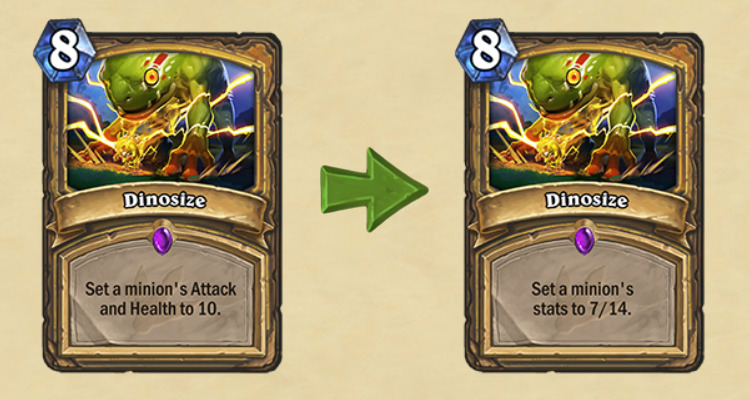 - 旧:将一个随从的攻击力和生命值变为10。 → 新:将一个随从的属性值变为7/14。