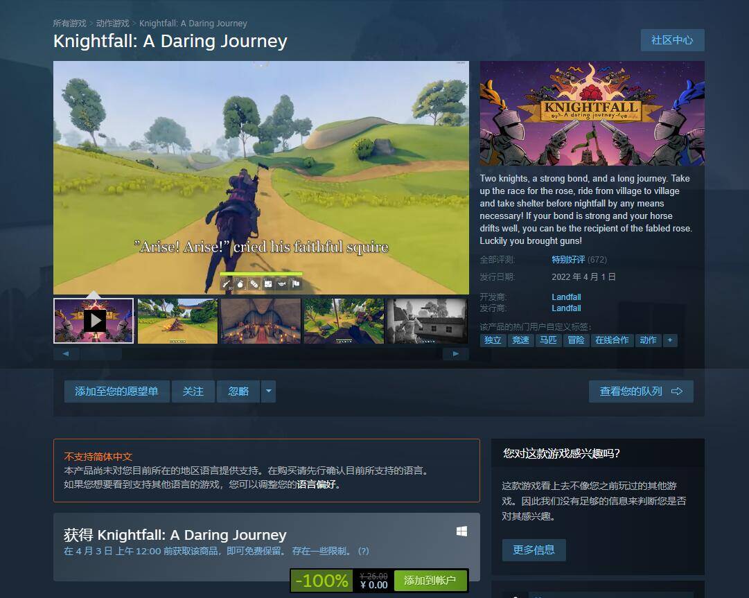 Steam 地址:https://store.steampowered.com/app/1911390/Knightfall_A_Daring_Journey/
