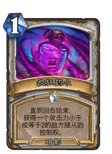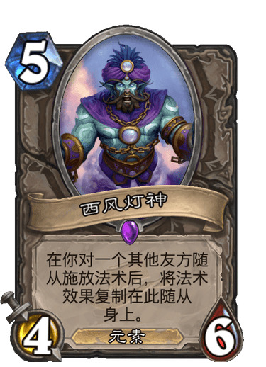 刚出来大家都认为灯神是buff型随从,因此很适合牧师,圣骑吧,的确最开始的灯神牧,大家希望的是灯神站场后蹭一些buff,这已经对得起紫卡的身价了。时间过了一年,加基森带来暗金教和宇宙,雷诺瞬间走红,我高中室友砸锅卖铁和了套宇宙术,他的天梯排名稳步上升,某夜我又在旁给他ob,对面牧师一套很奇怪的方式带走了他,室友立马+了好友,一边观战一边问卡组,牧师也是愉悦分享,并且又拿下了胜利,我又一次看见了,那张紫色的主角不正是和雷诺同时期登场的西风灯神吗!暗金教的法术(除了1张)全是药水,牧师更是直接4张,强效治疗的回复苟命完美对标火球术的伤害,龙息更是完美的AOE,不过灯神牧需要的另外两张小巧的1费药水。我的回合!多隆!从手牌通常召唤西风灯神;发动魔法卡,缩小药水,将你所有怪兽攻击力在本回合下降,然后发动疯狂药水,直到回合结束我获得你一个怪兽的控制权;