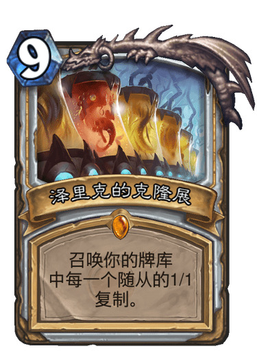 砰砰博士计划为9职业量身定做了传说级法术,什么你说任务,不行我传说级法术不能被发现,明显血统高贵。几乎每一个职业的传说法术都有它们可以发挥的卡组,只不过有些确实是后话,而牧师的传说法术克隆展绝对是当时最有用级别的,
