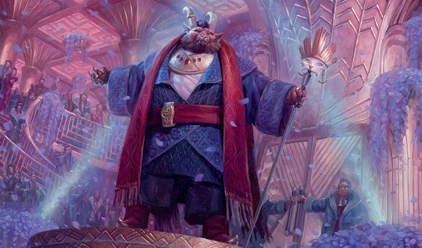 「替我问候她们。」杰米尔把自己推离办公桌,一边将他自己的饰带披在肩上并拿起他的权杖。在权杖顶端有一张带着皇冠的狮族脸孔-乐舞会的象徵物。