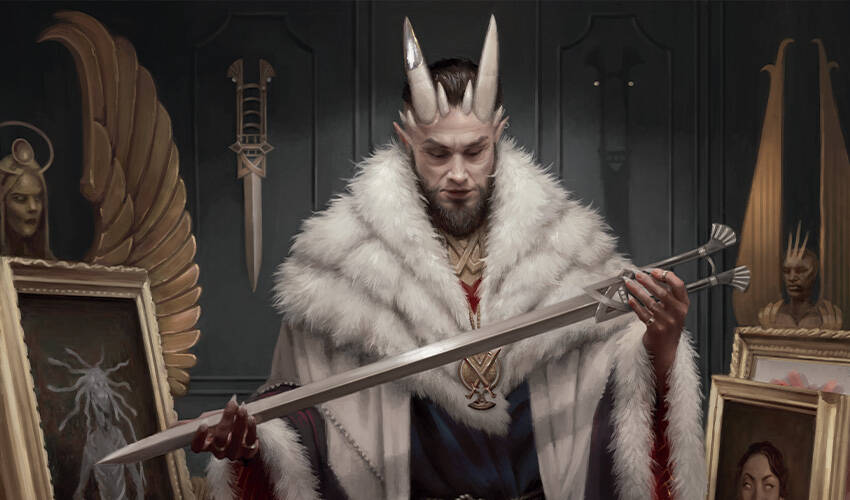 「要从哪开始呢?」尚夺尔已转向桌子,肩甲回到了成排的物品之间。此刻他正在检视匕首、毒药戒指、也能作为指虎使用的戒指,以及他个人的最爱,能够几乎完全压制魔法声响与闪光的噤声腕扣,对于刺客来说是个完美的工具。「我想,就这个吧,」尚夺尔同时选择了一副腕扣和一个念头。「这座城裡的权力平衡正在改变。」