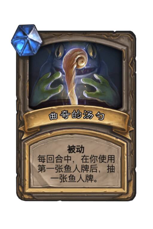 - 招牌宝藏6正义之剑,5费,将所有随从变形成为1/1的鱼人。随机将鱼人牌置入你的手牌,直到你的手牌数量达到上限。这些鱼人牌的法力值消耗为(1)点。