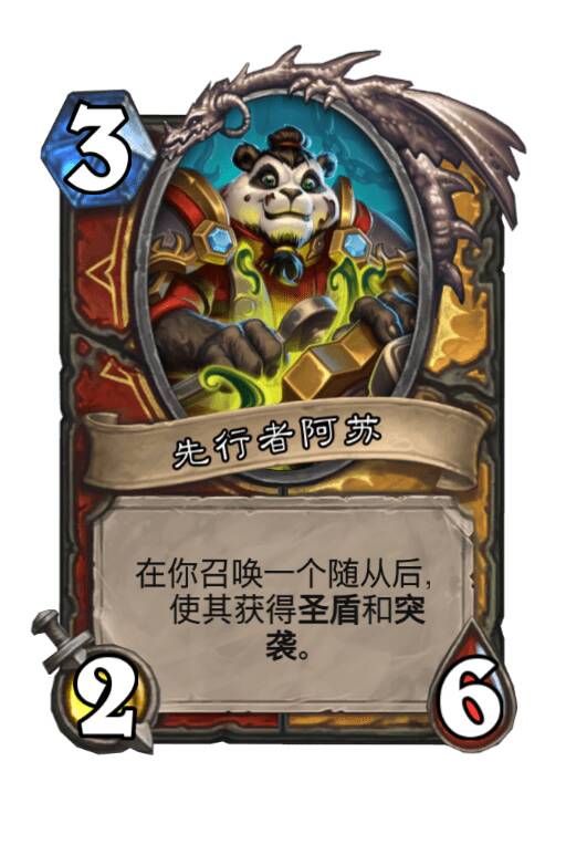 - 技能3力量强化,2费,使一个随从获得圣盾和风怒。