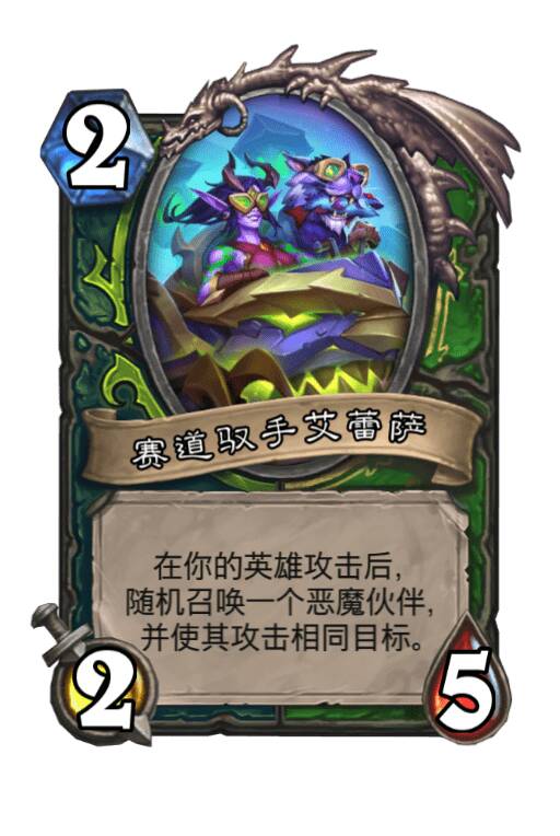 - 招牌宝藏2伊莉斯的弯刀,5费3/3武器,在你的英雄攻击后,召唤两个2/2的树人,并使其获得突袭。