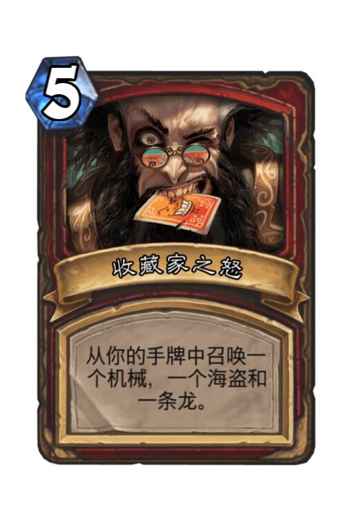 - 招牌宝藏4高级探墓员,4费5/5,战吼:在本局对战中,如果你使用了5张奥秘牌,则将你的英雄技能变为“发现一张宝藏牌”。