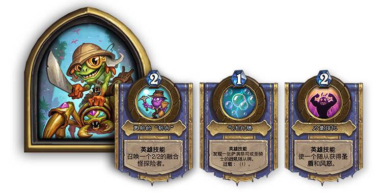 - 技能1更新的“新兵”,2费,召唤一个2/2的融合怪探险者。