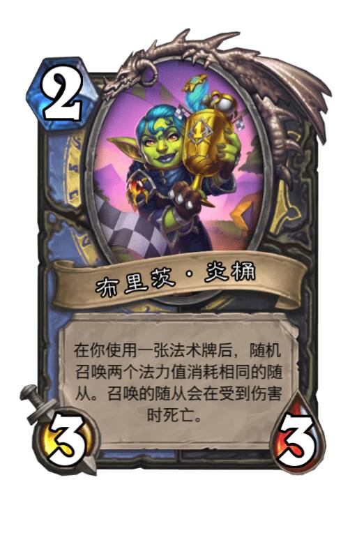 - 招牌宝藏5雷·火掌,4费2/6,每个回合中,在你施放第一个法术后,再次施放该法术(目标不变)。