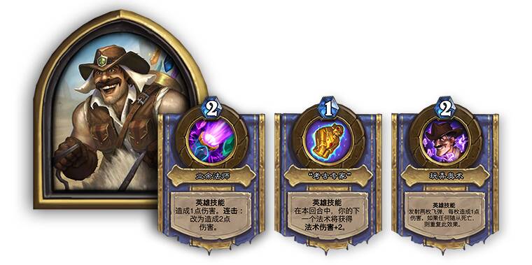 - 技能2“考古专家”,1费,在本回合中,你的下一个法术将获得法术伤害+2。