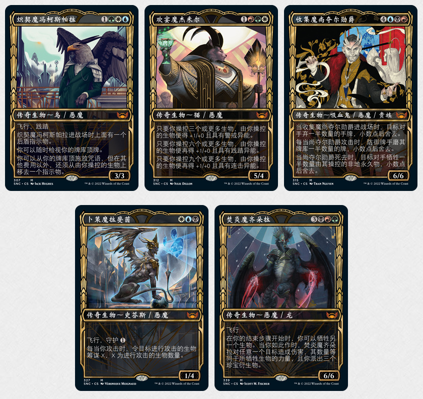 新卡佩纳:喧嚣黑街内含101张普通牌、80张非普通牌、60张稀有牌和20张秘稀牌~其中许多牌有上述各种处理。